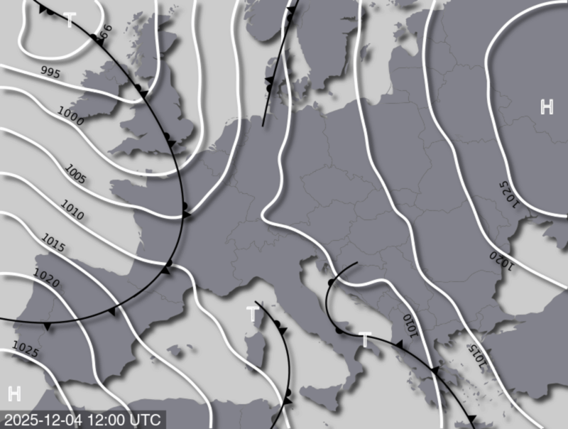 Am Donnerstag liegt die Bundesrepublik auf der Vorderseite eines Tiefdruckkomplexes, welcher sich vom Atlantik bis in den Mittelmeerraum erstreckt. Dabei erreicht den Westen am Abend die Okklusion des Tiefs CHRIS mit Kern bei den Britischen Inseln. In der Nacht auf Freitag zieht ausgehend von einem Tief über Italien ein Niederschlagsgebiet über die Alpen nordwärts. Ab den mittleren Lagen aufwärts ist ein wenig Neuschnee zu erwarten. Ansonsten macht sich ein Zwischenhoch bemerkbar. Am Samstag zieht dann von Westen die nächste Okklusion eines Atlantiktiefs auf.