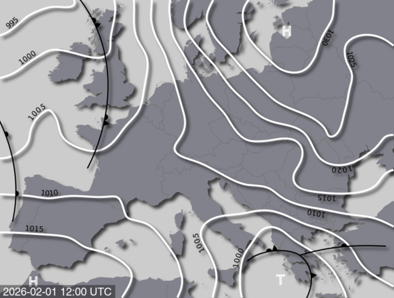 Frontenkarte 26.01. 12 UTC; @meteonews.ch