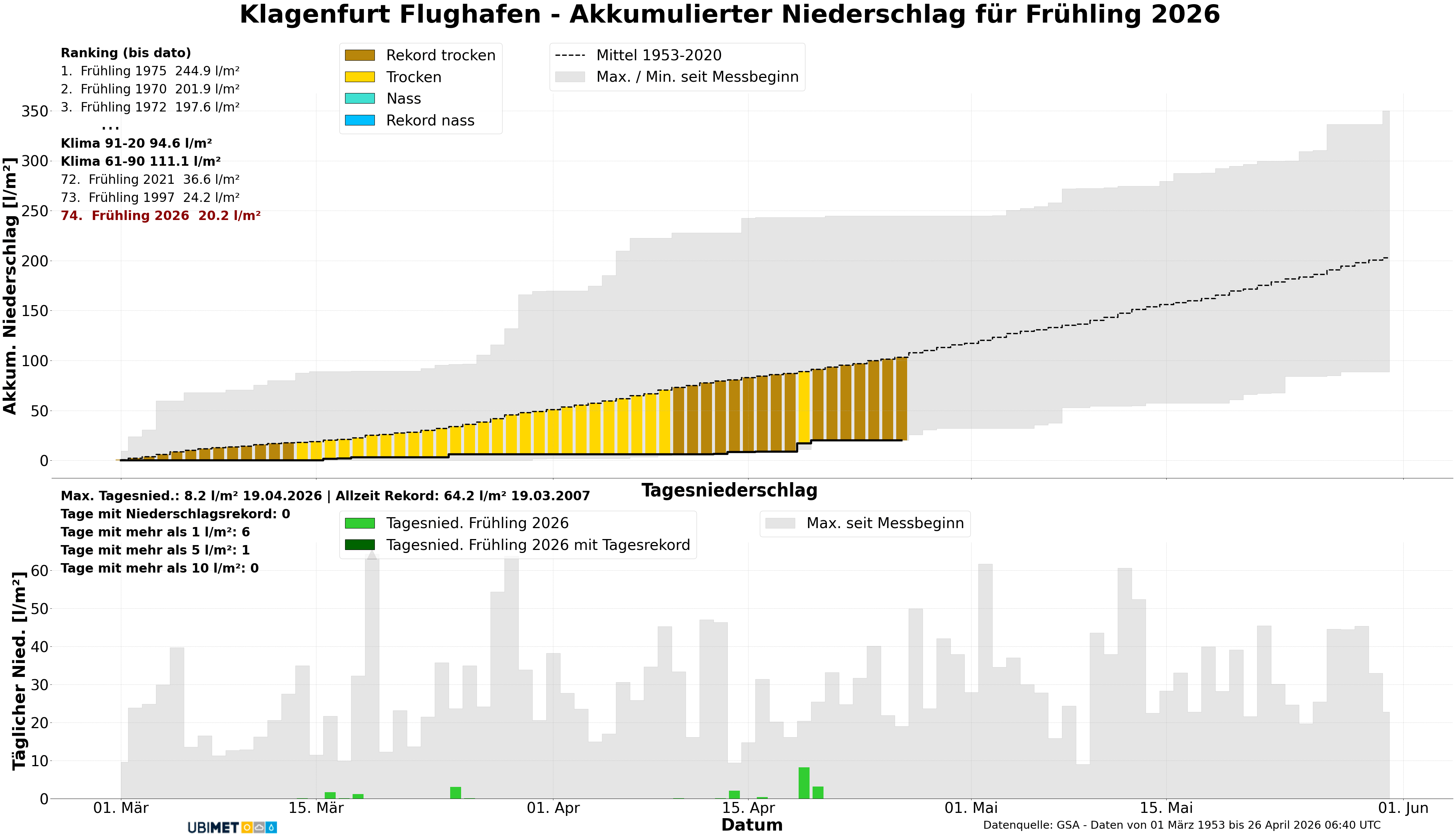 Während der Wochenstart unter dem Einfluss eines Mittelmeertiefs noch häufig bewölkt und leicht unbeständig verlief, dominierte nach der Wochenmitte unter Zwischenhocheinfluss wieder überwiegend sonniges und mildes Frühlingswetter. Dieser Wettercharakter setzt sich auch noch am Samstag fort. Der Sonntag steht dann allerdings ganz im Zeichen einer Kaltfront, dann werden auch Gewitter zum Thema. Ergiebiger, flächendeckender Regen ist allerdings nicht in Sicht. Die Trockenheit der letzten Wochen und Monate setzt sich also weiter fort und wird maximal punktuell etwas gelindert.