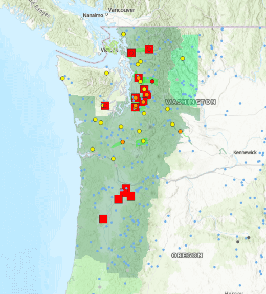 Vor allem die Flüsse Skagit und Snohomish verzeichneten einen massiven Anstieg der Pegelstände. Mehrere Dämme hielten den Wassermassen nicht stand, wodurch ganze Wohngebiete überflutet wurden und evakuiert werden mussten.