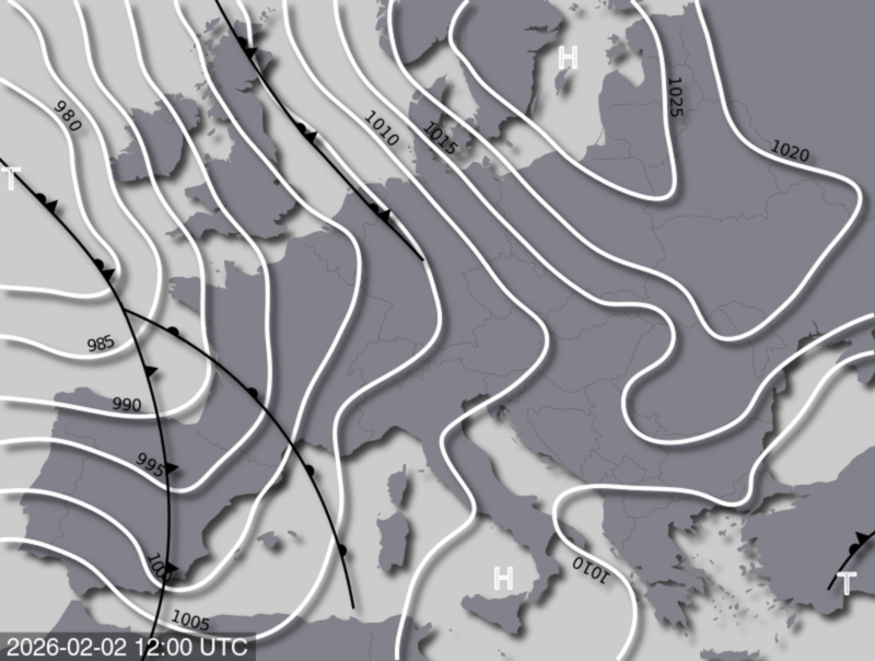 Frontenkarte 26.01. 12 UTC; @meteonews.ch