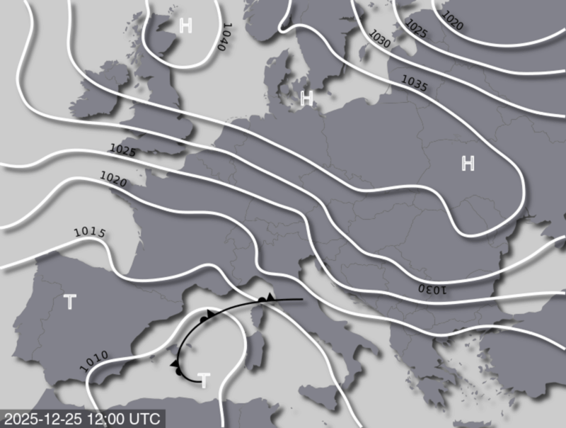 Am 1. Weihnachtsfeiertag nimmt der Tiefdruckeinfluss im Süden wieder ab und das Wetter beruhigt sich, in höheren Luftschichten erreichen zudem wieder etwas mildere Luftmassen die Bundesrepublik. Unter Hochdruckeinfluss bleibt es auch am Freitag verbreitet ruhig. Am Samstag nimmt schließlich die Gefahr vor gefrierendem Regen im Nordosten mit einer aufziehenden Störung etwas zu, sonst dominiert weiter ruhiges Wetter.