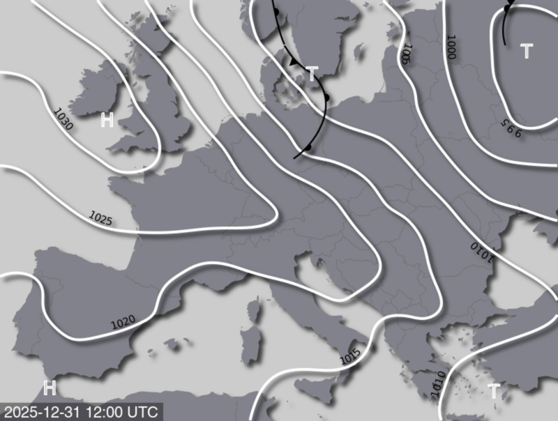 Am Mittwoch (Silvester) zieht vom Nordmeer nach Polen ein erstes und kleines Tief namens SANDRO auf, welches für verbreitet winterliches Wetter sorgt. An Neujahr macht sich schließlich ein nächstes, aber umfangreicheres Tief mit dem Namen TIZIAN mit Kern über Südnorwegen bemerkbar. Das Tief bleibt auch am Freitag wetterbestimmend. Dabei hält die winterliche Wetterphase weiter an.