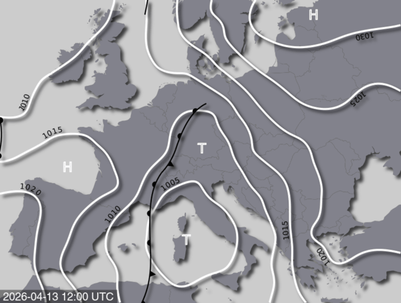 Am Montag liegt die Kaltfront des Tiefs TAMINA mit Kern bei Irland etwa von der Nordsee bis zum Oberrheingraben. Mit der Annäherung eines Tiefs über dem zentralen Mittelmeer sowie im Zuge einer straffen Südwestströmung in der Höhe verstärkt sich im Alpenvorland ein kleines Tief (Leetief). Dadurch kommt die Front kaum voran. Am Dienstag zieht das Leetief etwas nach Norden, während sich die kältere Luft besonders an den Alpen ostwärts ausbreitet. Auch am Mittwoch liegt dieses Tief noch über Deutschland und sorgt für unbeständiges Wetter. Erst am Donnerstag verlagert es sich weiter nach Osten.