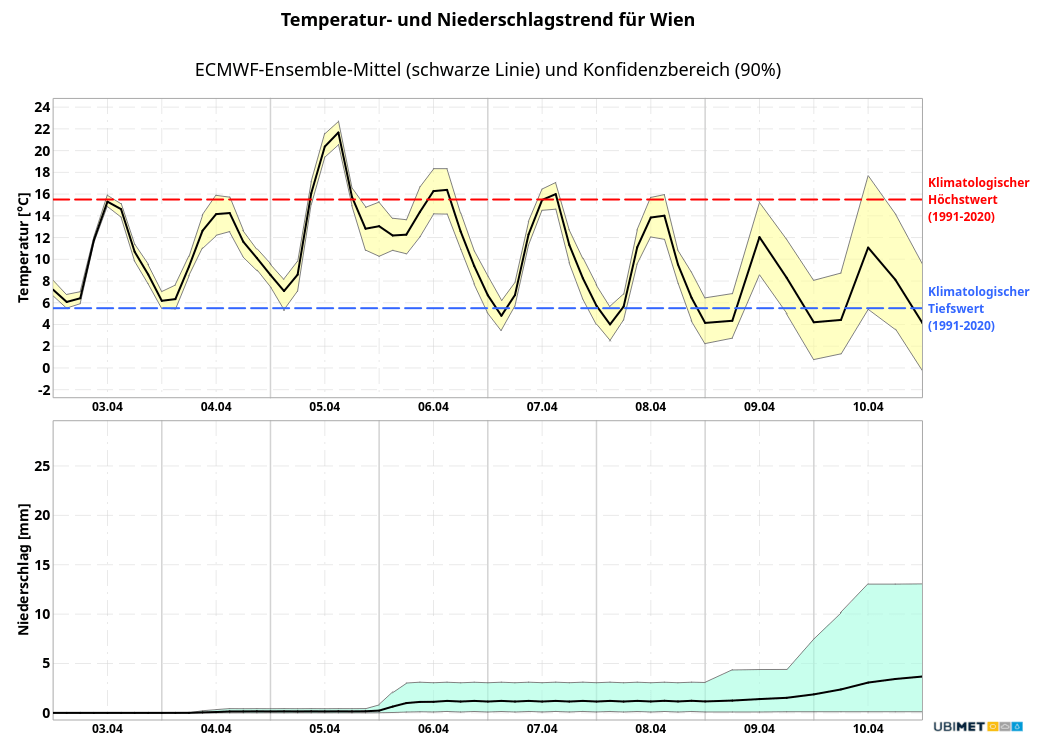 Der aktuelle Wettertrend für Wien: Zu Ostern wird es besonders mild, am übernächsten Wochenende deuten die Modelle auf eine Abkühlung hin.