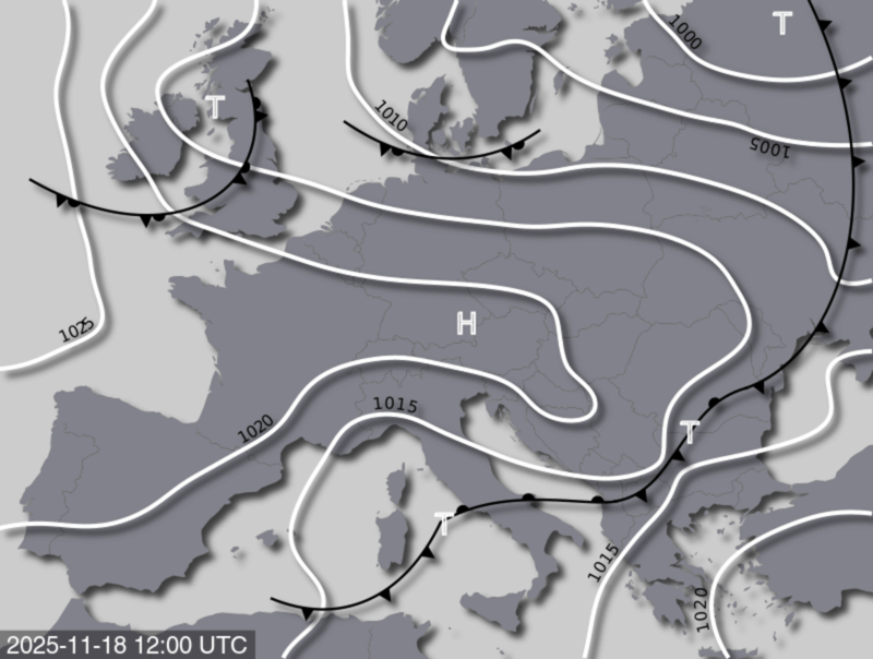 Nach dem Abzug der Kaltfront setzt sich am Dienstag erneut ein Zwischenhoch durch und bringt dem Alpenraum vorübergehend ein paar ruhigere Tage. Am Donnerstag erreicht von Westen her eine weitere Kaltfront die Region und sorgt wieder für unbeständigere Bedingungen, dabei schneit es im westlichen und zentralen Bergland bis in tiefe Lagen. Am Freitag entsteht über dem Mittelmeer ein Tiefdruckgebiet, das sich in der Folge in Richtung Alpen verlagert und am Samstag im Süden und Osten eine frühwinterliche Wetterphase einläutet.