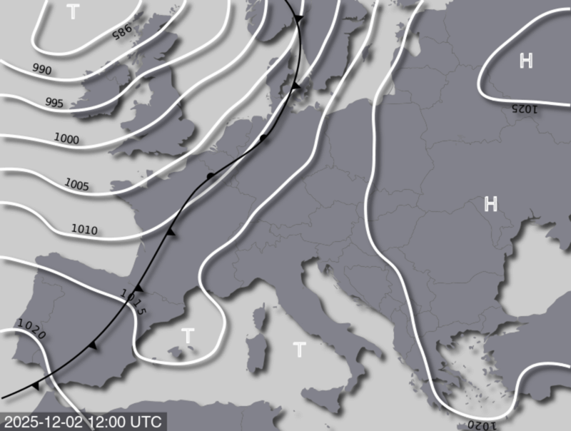 Am Dienstag liegt Deutschland zwischen einem umfangreichen Tief über der Norwegischen See und einem Hoch über Osteuropa. Eine schwach ausgeprägte, nahezu stationäre Kaltfront erstreckt sich quer über den Westen und Nordwesten des Landes, während sich im Südosten die Inversionswetterlage fortsetzt. Im weiteren Wochenverlauf bringen weitere atlantische Tiefausläufer leicht wechselhaftes Wetter, wobei die Temperaturen um oder knapp über dem langjährigen Mittel bleiben.