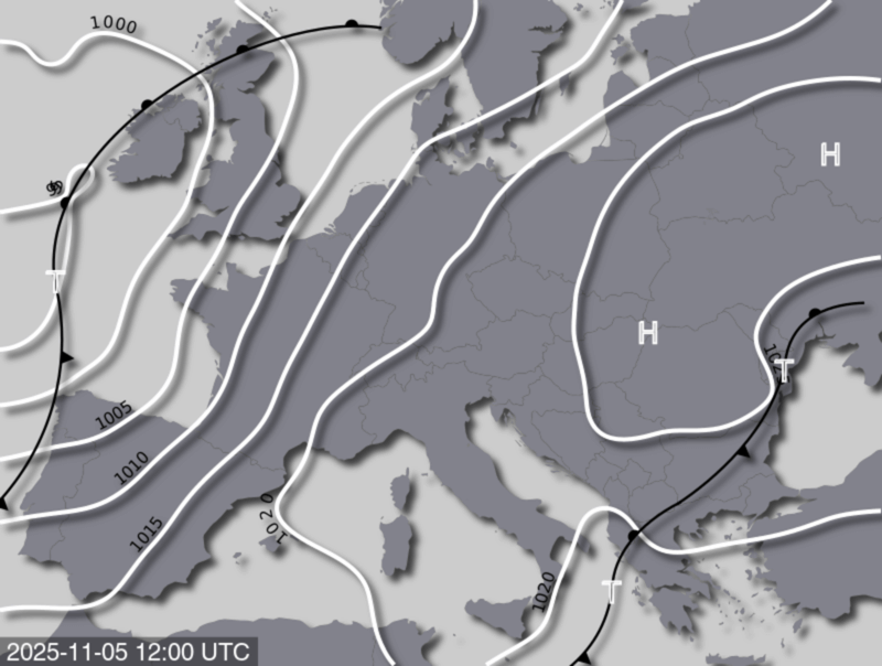 Zur Wochenmitte liegt der Alpenraum noch unter Hochdruckeinfluss. Aufgrund der Südwestströmung im Vorfeld eines Tiefs bei den Britischen Inseln wird für die Jahreszeit äußerst milde Luft nach Mitteleuropa gelenkt. Somit setzt sich häufig ruhiges Herbstwetter durch, allerdings nimmt auch die Neigung zu Nebel und Hochnebel von Tag zu Tag zu. Ein ausgeprägter Kaltluftvorstoß in der ersten Novemberhälfte ist äußerst unwahrscheinlich, wenngleich ab dem Wochenende allmählich wieder etwas kühlere Luftmassen aus Osteuropa den Alpenraum erreichen dürften.