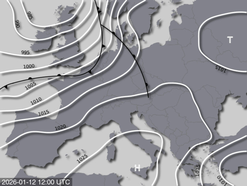 Am Montag zieht die Warmfront des Atlantiktiefs GUNDA im Westen auf und überquert bis Dienstagvormittag das gesamte Land. Besonders im Norden und Osten kündigt sich eine ausgeprägte Glatteislage an! Nachfolgend erfassen uns etwas mildere Luftmassen und das Wetter beruhigt sich vorübergehend wieder. Von Mittwoch auf Donnerstag macht sich dann nördlich der Alpen eine schwache Kaltfront bemerkbar.