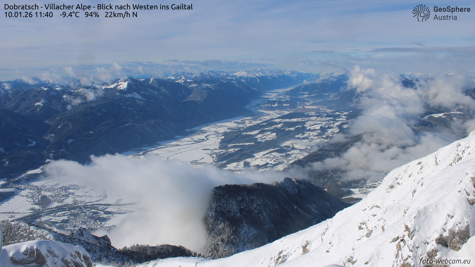 Titelbild: Webcam Dobratsch mit Blick ins verschneite Gailtal; @foto-webcam.eu