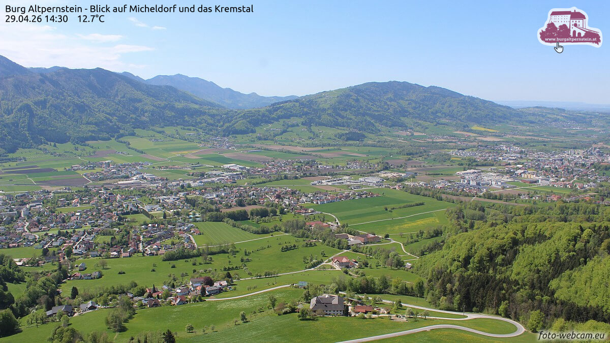 Titelbild: Blick von der Burg Altpernstein auf das Kremstal und Micheldorf. @foto-webcam.eu