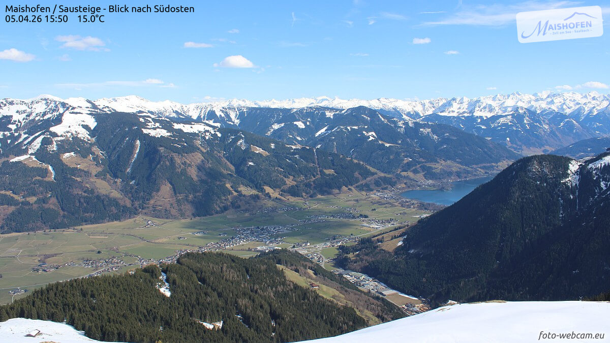 Titelbild: Blick von der Sausteige nach Südosten auf Maishofen und den Zeller See im Pinzgau @ foto-webcam.eu