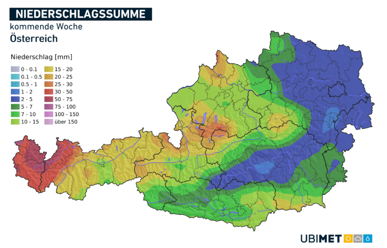 Deutlich trockener bleibt es hingegen im Süden und Osten: Von Osttirol bis zum Weinviertel fallen die Mengen mit 5 bis 10 l/m² eher bescheiden aus. Die große „Winterdürre“ wird dort also nur leicht gemildert.